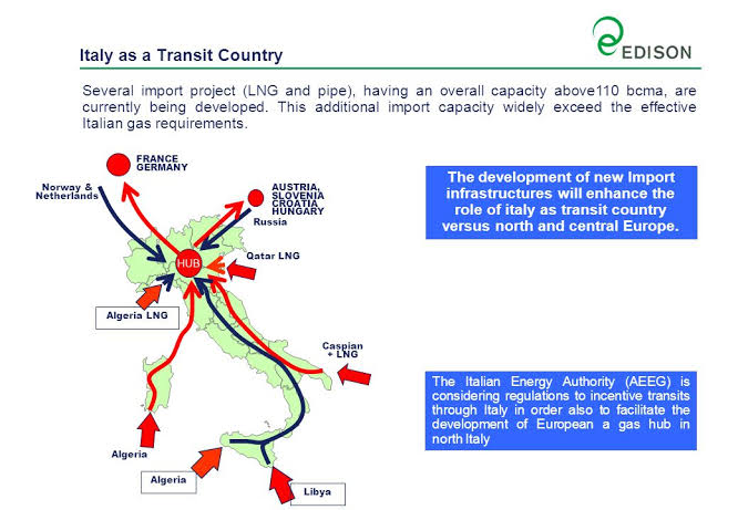 Gas coming from Asia, Middle East and North Africa Italy will become the gas hub for Europe thanks to its Zero Enemies policy. Italy now reminds me of Turkey before 2010.
